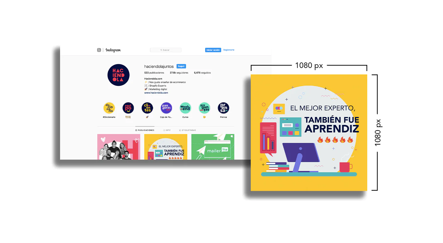 La medida recomendada para esta plataforma son imágenes cuadradas de 1080px como en Instagram.